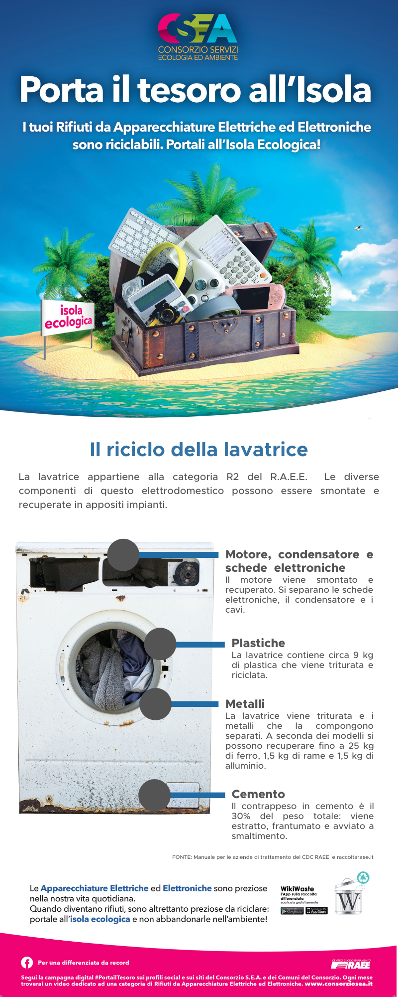 Con la campagna di comunicazione #PortailTesoro, supportata dal Centro di Coordinamento RAEE (l'organismo centrale che si occupa di ottimizzare la raccolta, il ritiro e la gestione dei Rifiuti da Apparecchiature Elettriche ed Elettroniche in Italia www.cdcraee.it) il Consorzio SEA si impegna a incoraggiare i cittadini a conferire i propri RAEE nelle Isole ecologiche del territorio, e contrastare così gli abbandoni dei rifiuti sul territorio.