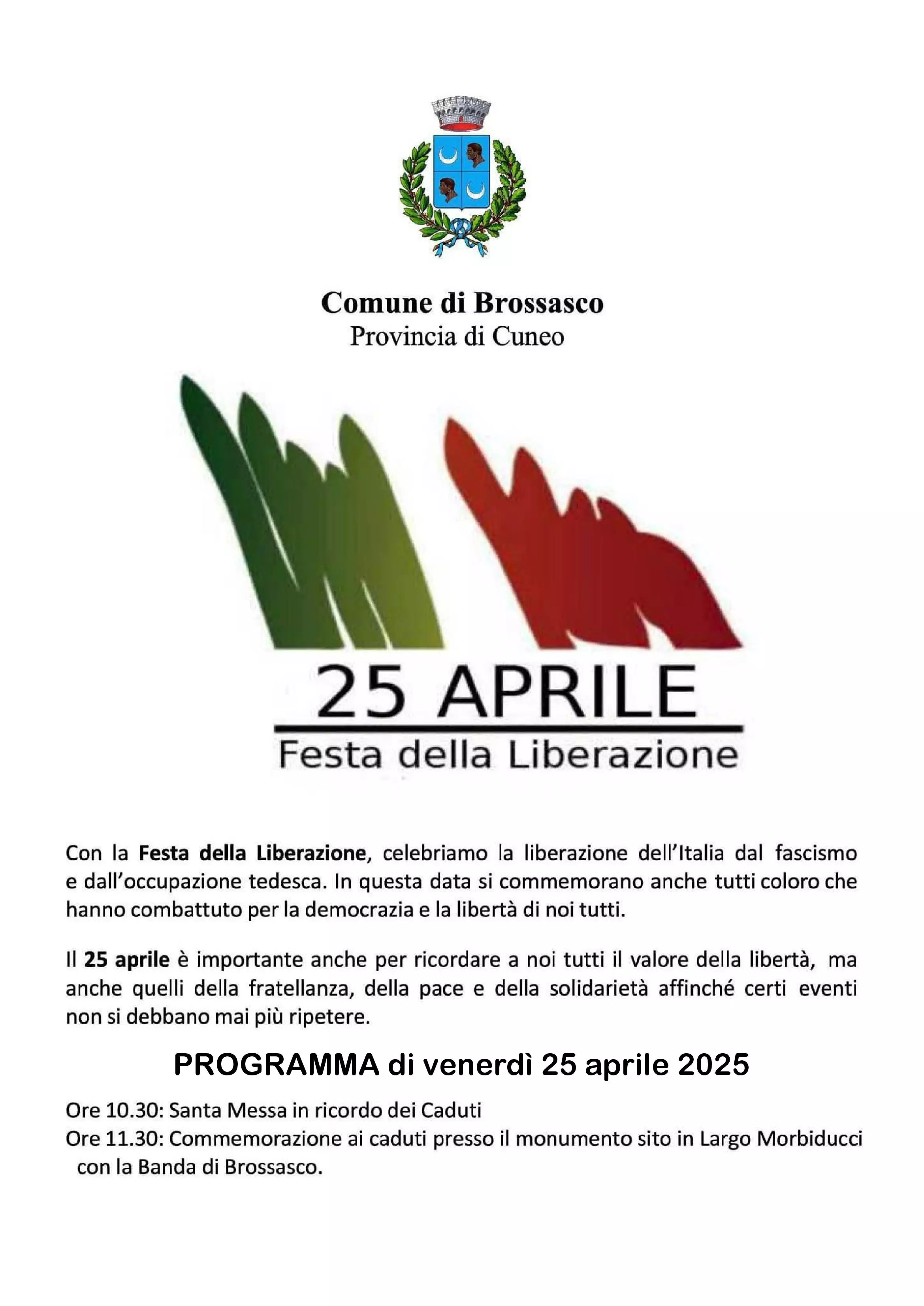Ore 11.30: Commemorazione ai caduti presso il monumento sito in Largo Morbiducci con la Banda Musicale di Brossasco.
