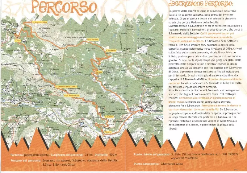 Punto di ristoro sul percorso: S. Sisto (Gilba) previa telefonata al n° 348 0309172 oppure 0175 689014